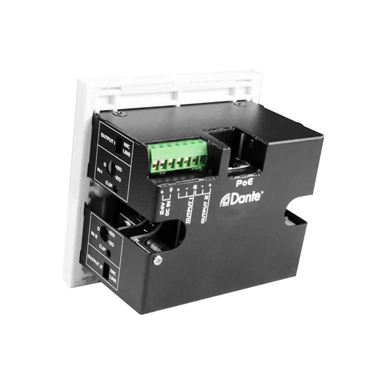 Панель интерфейса 2CH Dante Interface 2 Mic/Line Interface Panels Panel идеально подходит для профессиональных звуковых приложений, таких как конференц-залы, настройки живого звука, вещательные студии и установленные AV Systems, где надежная конверсия Dante-Analog и аналог в Dante требуется в компактном факторе без стоек. Его конструкция, установленная на стене, обеспечивает чистую и эффективную интеграцию в различные среды, сохраняя при этом высококачественную аудиопроизводительность.